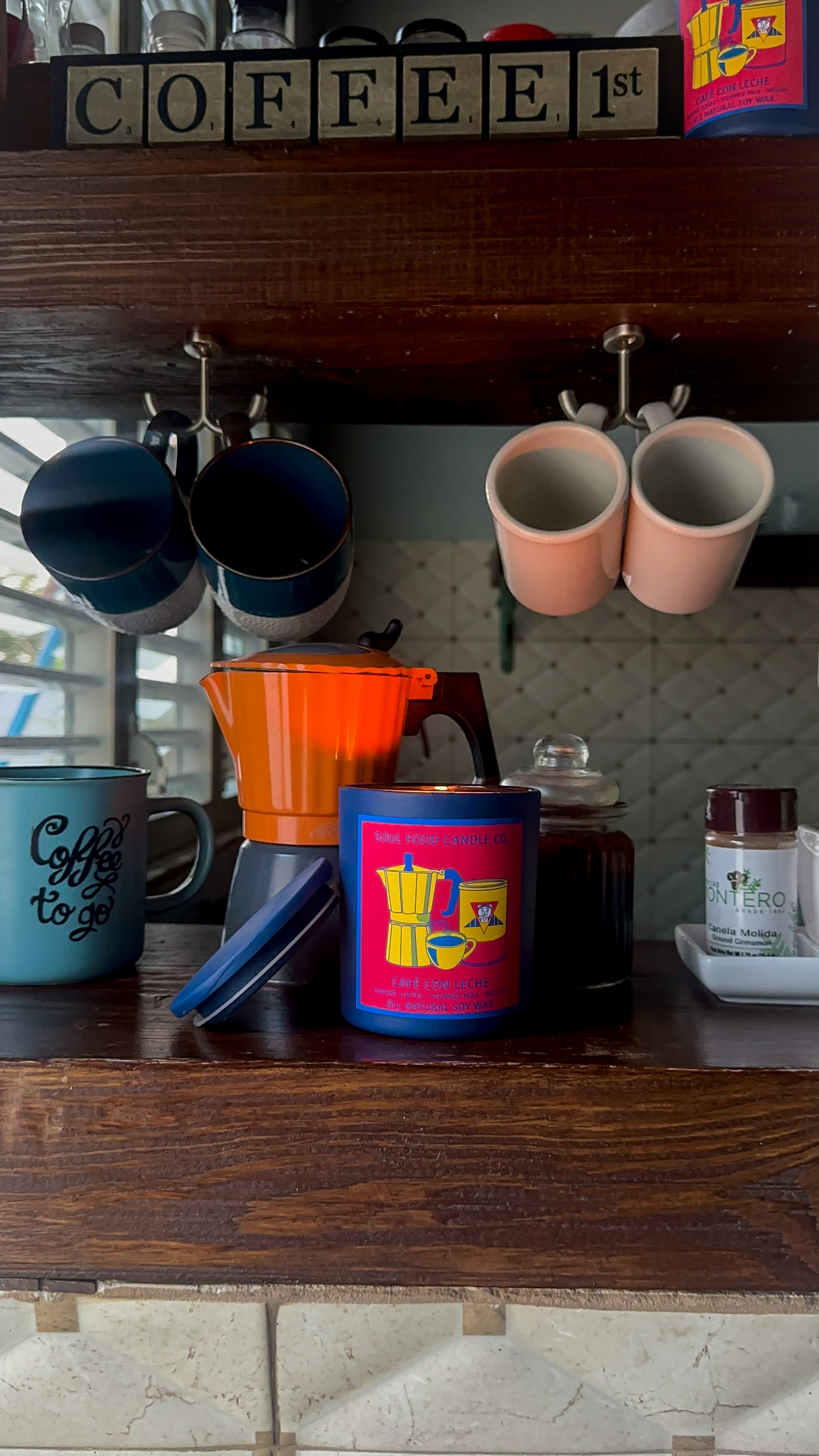 Café Con Leche is the warm embrace you need to kickstart your day or unwind in the evening. This comforting candle blends the rich aroma of instant coffee with the creamy warmth of steamed milk, sweetened by a touch of azucar. Inspired by those quick, cozy breakfasts with family, where coffee and quesitos are the stars, this scent offers a soothing sense of familiarity and a subtle boost of creativity, perfect for any time of day.
