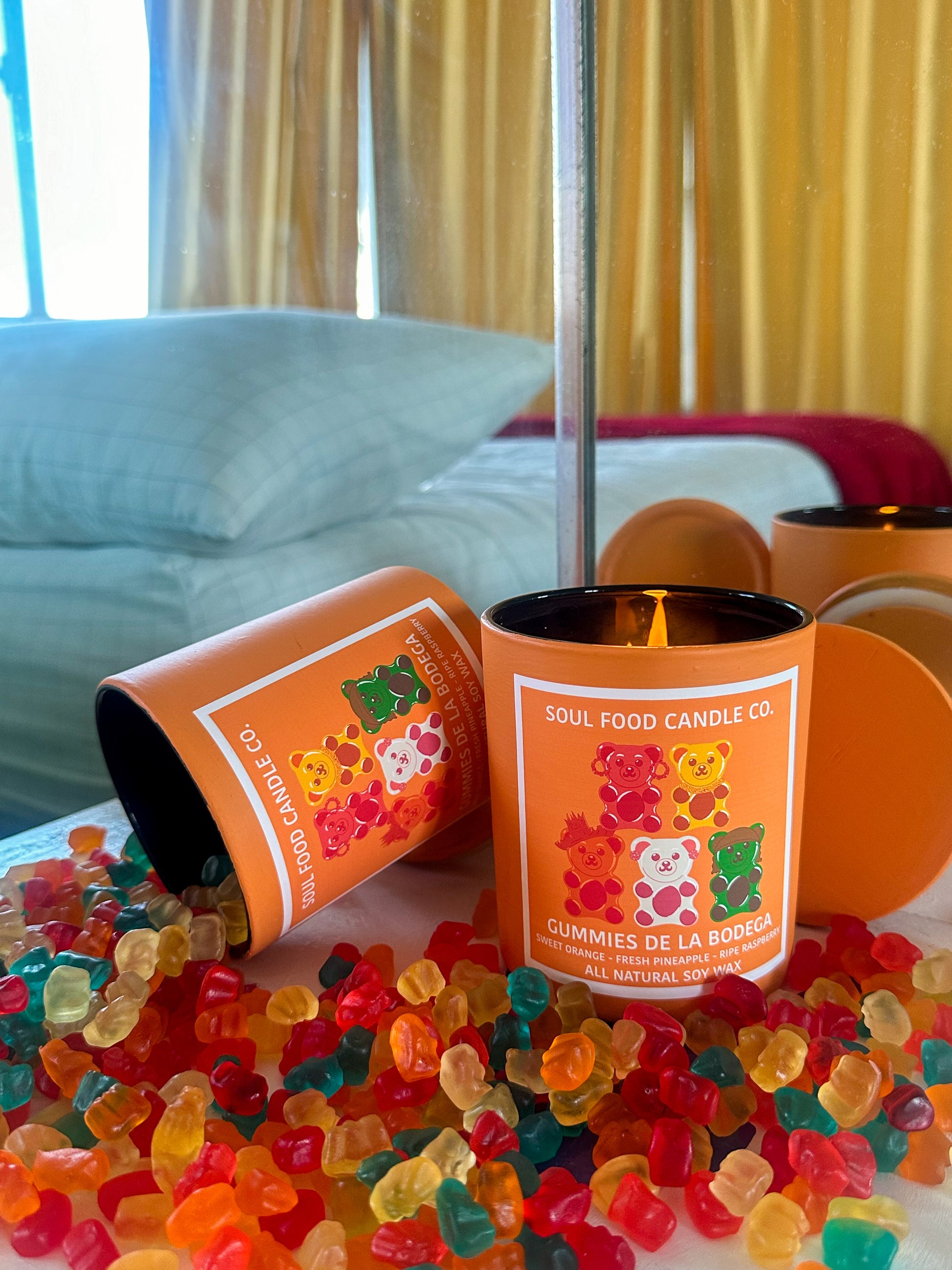 Gummies De La Bodega 🍬 is a sweet new addition to our "La Bodega De Soul" collection, capturing the playful and fruity essence of your favorite gummy treats from the local bodega. With top notes of zesty sweet orange, a burst of fresh pineapple at its heart, and the juicy finish of ripe raspberries, this candle brings back the joy of picking out candy on a neighborhood snack run. Light it up and let the fun, fruity aroma fill your space with delicious nostalgia.