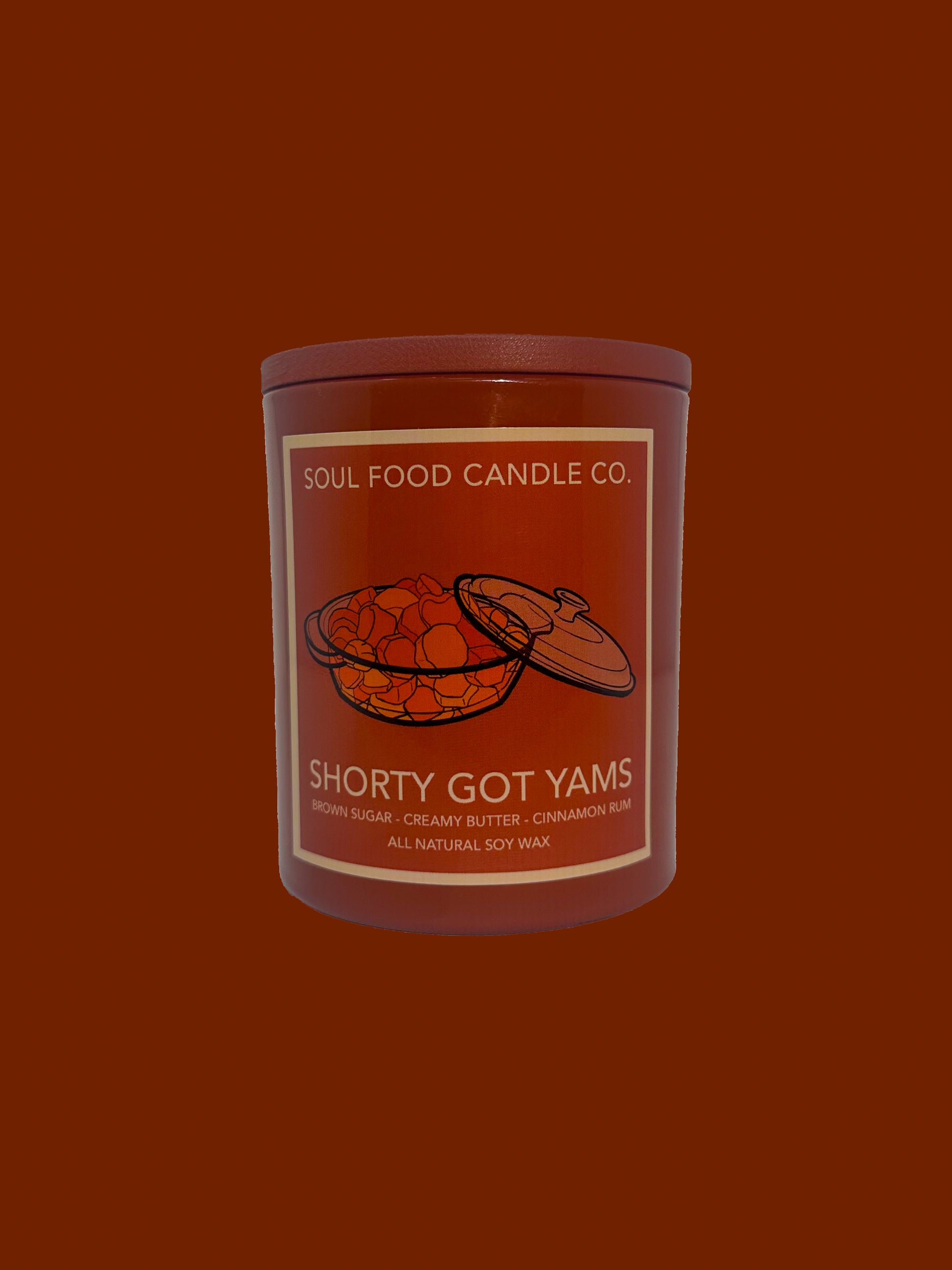 This scent takes inspiration from the beloved side dish of candied yams, delivering an irresistible fragrance that will make your space feel like home. With notes of Brown Sugar, Creamy Butter, and Cinnamon Rum, this candle embodies the essence of soul food comfort. Imagine yams so delicious they melt in your mouth. Whether you're reminiscing about Momma’s sweet potato pie or pairing these yams with cornbread, every flicker of this candle invites you to savor the joy of those cherished moments.